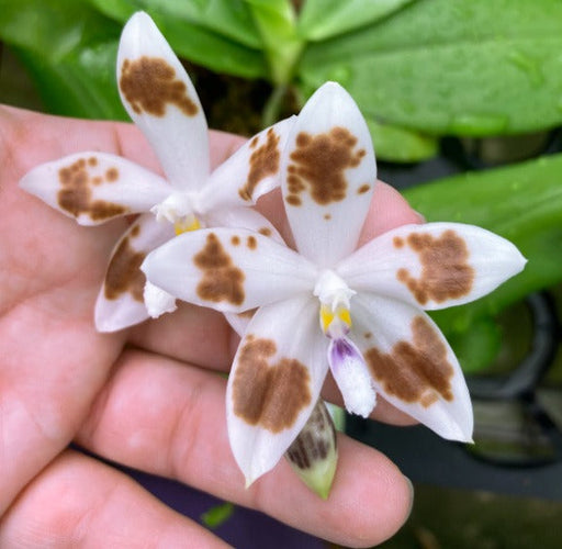 Phalaenopsis tetraspis 'Dark brown with White'' stem prop