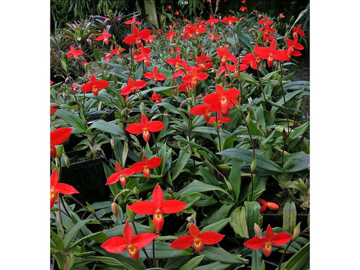 Phragmipedium Andean Fire (Primary Hybrid) This spectacular slipper orchid hybrid, is a primary cross between the brilliant Phragmipedium besseae a...