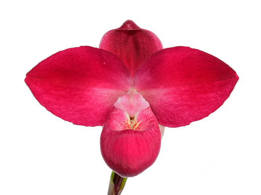 This exceptional slipper orchid hybrid is a cross between Phragmipedium boissierianum and Phragmipedium schlimii, combining distinctive characteris...