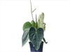 This captivating hybrid is a cross between Anthurium crystallinum and Anthurium luxurians, creating a dramatic plant known for its dark and mysterious appearance. The glossy, heart-shaped leaves are primarily black with a velvety texture.