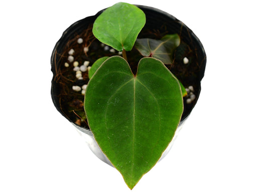 Anth. Velvet Eclipse is an exceptional hybrid seedling resulting from the cross of Anth. luxurians and Anth. nigrolaminum Ecuagenera. This young pl...