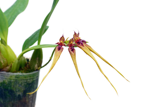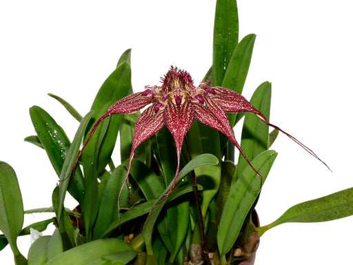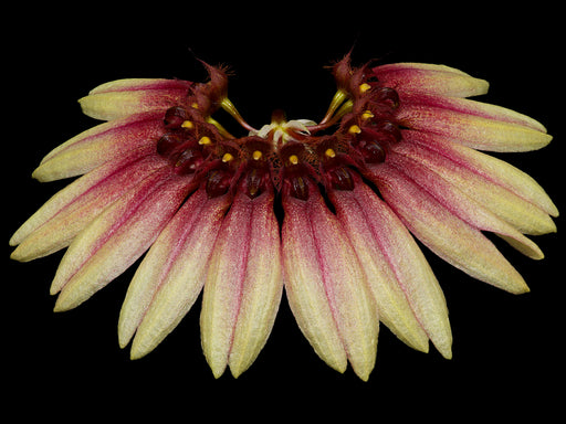 Bulbophyllum frostii is an elegant epiphytic orchid featuring large, pendulous flowers that add dramatic flair to any collection. Known for its str...