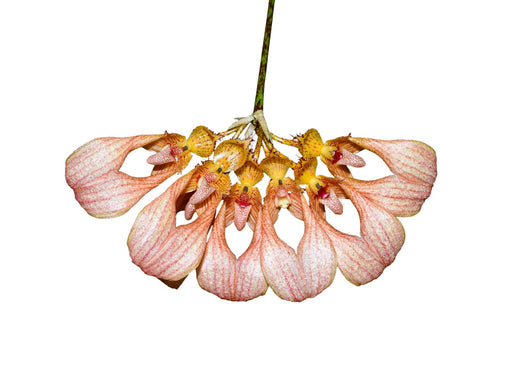 This distinctive epiphytic orchid species is renowned for its unique morphological characteristics and specialized flowering patterns that create f...