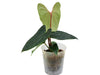 This plant features large, heart-shaped leaves with quilted texture and prominent venation. This unique hybrid combines the best traits of both parents, creating a prized choice for collectors.