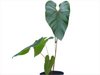 Anthurium Magnificent Gigi is an exceptional hybrid resulting from the cross between A. nigrolaminum 'Gigi' and A. magnificum, combining the best characteristics of both parent species to create a stunning specimen prized by collectors for its impressive heart-shaped foliage with velvety texture and striking venation patterns.