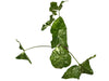 Arrowhead-shaped leaves with a dynamic, highly variable pattern of crisp white/cream speckles and splashes over a dark green base. Providing a moss pole will encourage the leaves to grow larger.