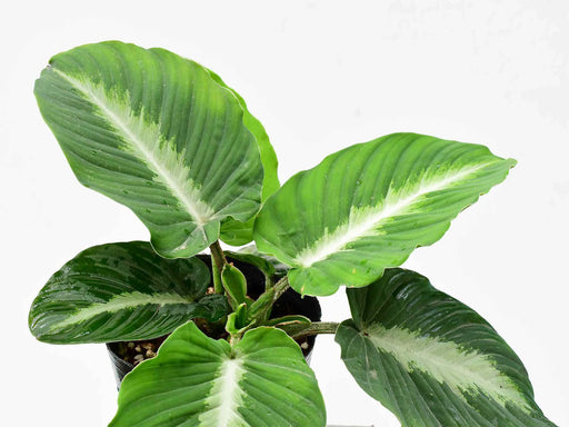 This captivating terrestrial aroid is celebrated for its striking blue-green foliage with bold light-colored veining and vibrant purple undersides,...