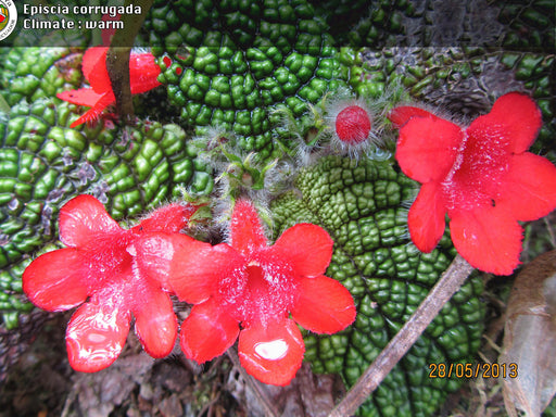 Episcia corrugada is a compact, terrestrial species from the African Violet family (Gesneriaceae). It is cherished for its intense, velvety, emeral...