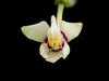 This miniature, monopodial epiphyte, is native to the Philippines, where it is found at elevations around 1000 meters. It has a short, cylindrical stem that carries several oblong to lanceolate, leathery leaves with a clasping base.