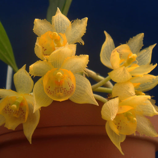 This exceptional hybrid orchid is a cross between Rlc. Eugene Banziger and Rlc. Haadyai Delight, celebrated for its brilliant golden-yellow flowers...