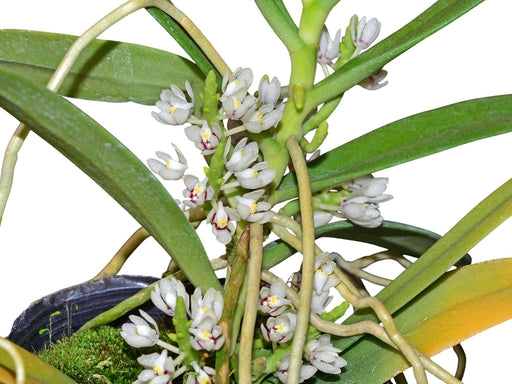 This miniature, monopodial epiphyte, is native to the Philippines, where it is found at elevations around 1000 meters. It has a short, cylindrical ...
