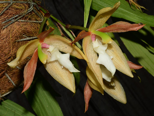 This exceptional intergeneric hybrid combines Houlletia tigrina with Paphinia hirtzii to create 'Alex Hirtz', honoring a significant figure in orch...