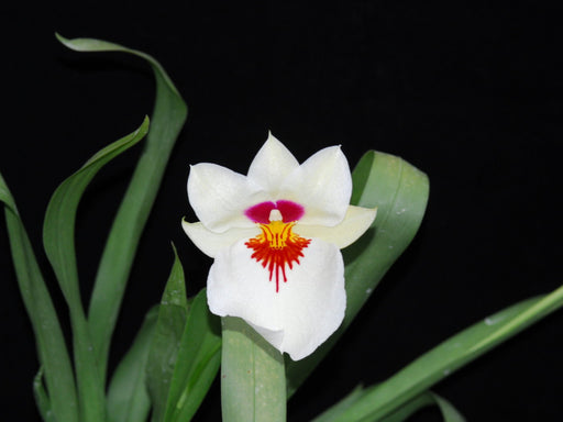 This exceptional intergeneric hybrid between Miltonia candida and Odontoglossum wyattianum combines the finest qualities of both parent species, cr...