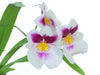 Miltoniopsis Twin Peaks H00033 is a captivating and distinctive orchid hybrid, celebrated for its charming and delicate appearance. This hybrid likely combines the best traits of its parent Miltoniopsis species, known for their elegant and uniquely shaped flowers. Twin Peaks H00033 typically features blooms that are reminiscent of delicate butterflies, with petals and sepals that are often white, cream, or pale yellow, adorned with intricate patterns, often in shades of pink, purple, or lavender. The flowers have a graceful and ethereal quality, enhanced by their pleasing fragrance, making them particularly enchanting. This orchid produces these charming blooms on slender, arching stems, adding to their visual appeal. Preferring conditions of moderate to bright, indirect light and high humidity, Miltoniopsis Twin Peaks H00033 is well-suited for indoor cultivation, where it can thrive in conditions that mimic its cloud forest origins. Its exquisite beauty and the delightful character of its blooms make it a popular choice among orchid enthusiasts, adding a touch of elegance and allure to any collection or interior space.