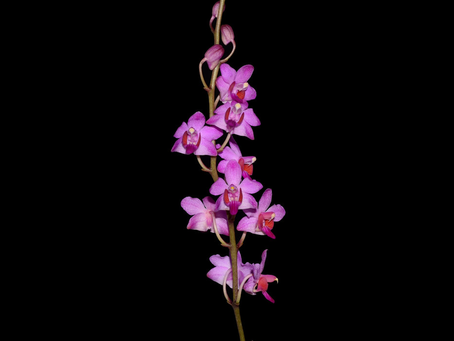 This stunning epiphytic orchid is celebrated for its delicate pink and white flowers with distinctive purple lip markings and compact growth habit, making it an excellent choice for collectors seeking beautiful blooming species with refined floral displays.