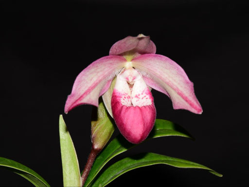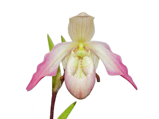 This exceptional slipper orchid hybrid is a cross between Phragmipedium boissierianum and Phragmipedium schlimii, combining distinctive characteris...