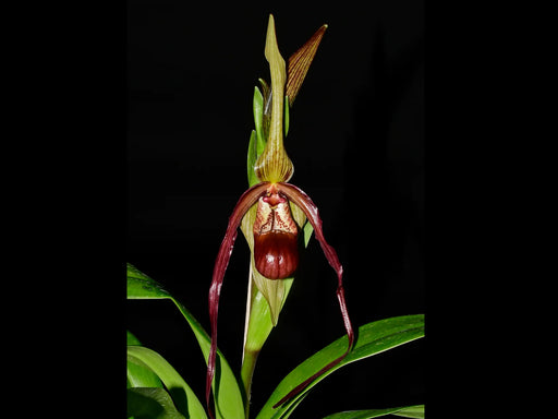 This exceptional slipper orchid hybrid, a natural cross between Phragmipedium longifolium and Phragmipedium warszewiczianum, stands as a testament ...