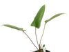Foliage Characteristics: Anthurium insigne 'Paquishae Rojo' has long, lance-shaped leaves with green tops and striking reddish-burgundy undersides. Its red petioles and midribs highlight the plant’s vibrant coloration and ribbed vein pattern.