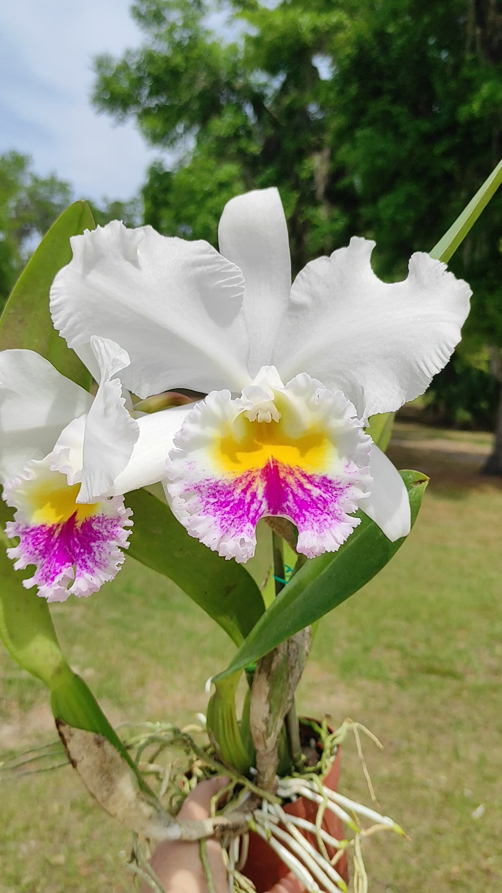 The hybrid Brassolaeliocattleya (Blc.) 'Mildred Rives' x Blc. 'Pastoral Innocence' represents a crossbreeding of two orchid varieties. These hybrids often combine desirable traits from each parent, producing unique and visually stunning flowers. With the influence of Brassavola, Laelia, Cattleya, and other orchid genera, the resulting Brassolaeliocattleya hybrid may showcase a variety of flower colors, sizes, and fragrances. To fully appreciate the characteristics of this specific hybrid, observing its blooming pattern and care requirements would provide valuable insights for orchid enthusiasts and growers.