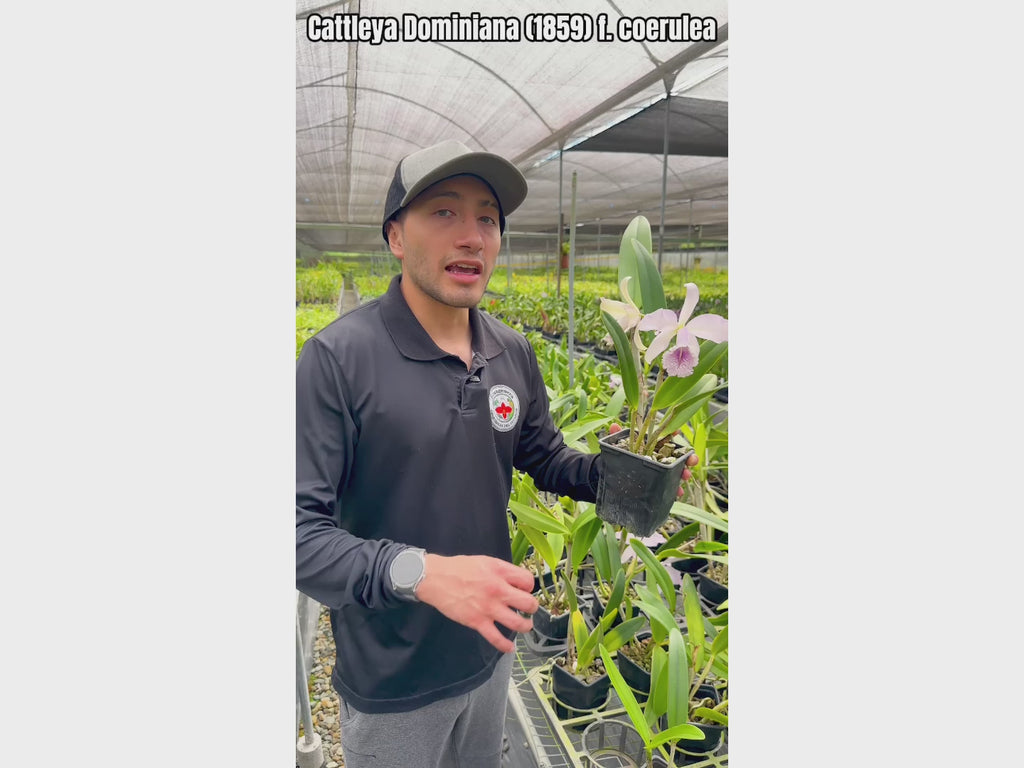 This historic primary hybrid between C. intermedia f. coerulea and C. maxima f. coerulea, first registered in 1859, represents one of the earliest successful Cattleya crosses and remains highly prized for its elegant blue-toned flowers.