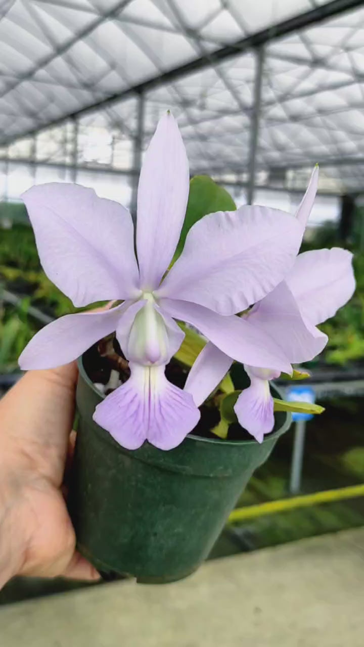 This Brazilian species is a highly sought-after, compact-growing orchid. This specific coerulea form displays beautiful gray-blue or lavender-blue flowers. It is unique among most Cattleya because its flower spike emerges from the base of the pseudobulb, not the top.