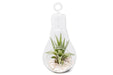 Our light bulb shaped glass terrariums are sure to turn heads. These adorable kits come with crushed white stone, an assorted tillandsia air plant and terrarium. They are sure to brighten up any space. They have a hook for hanging or you can place them on their flat bottom.