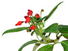 The flowers of Pearcea hypocyrtiflora cf are bright orange with magenta tips and inflated shapes typical of the species. This clone stands out for its pure green leaves with slight silver veins and great texture.