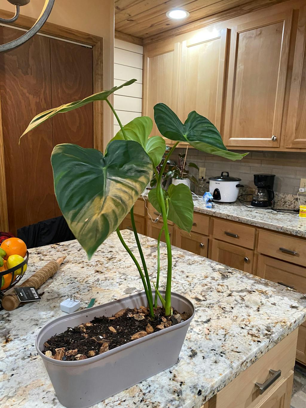 Prized for its large, elongated, heart-shaped leaves that can reach significant size. To accommodate its growth habit, use a wide, shallow pot rather than a deep one, allowing the stem to creep across the surface. - This plant is toxic if ingested.