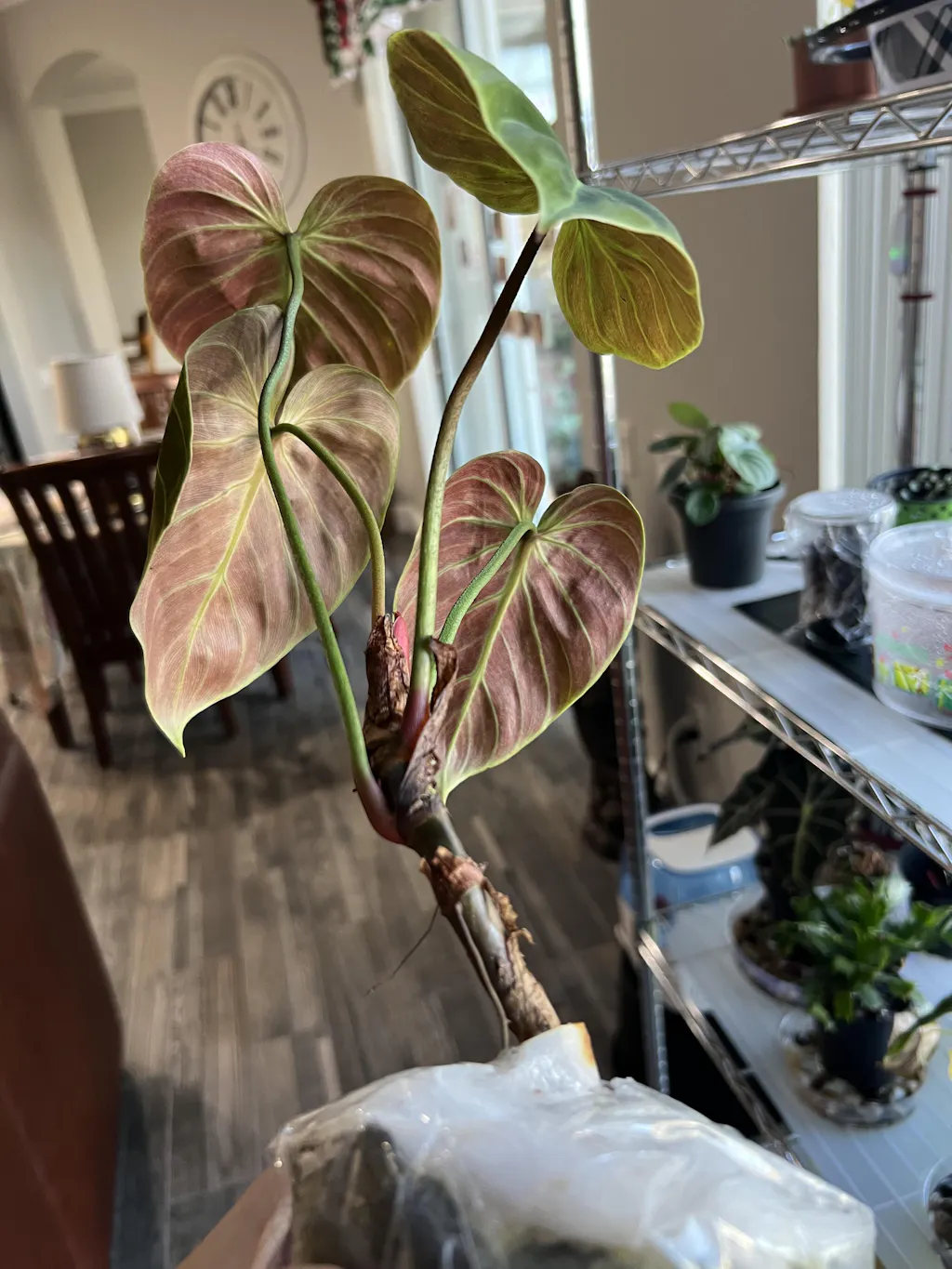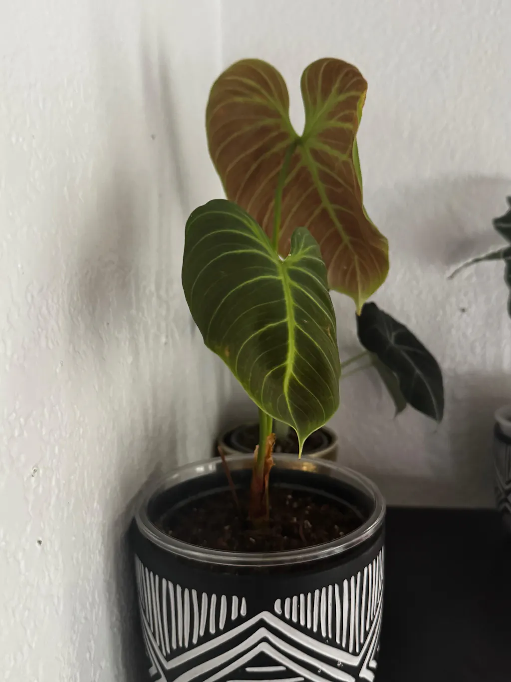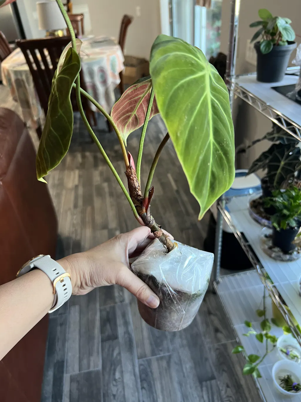 This captivating climbing species is a rare philodendron celebrated for its distinctive juvenile foliage and exceptional coloration with reddish young leaves that mature to deep green.