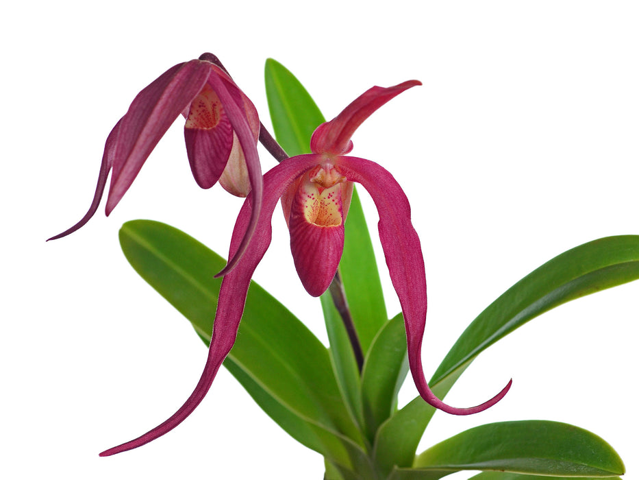 This exceptional slipper orchid hybrid is a cross between Phragmipedium kovachii and Phragmipedium warszewiczianum, showcasing the artistry of orchid breeding and masterfully combining distinctive characteristics that make it a prized specimen for discerning orchid collectors and enthusiasts.